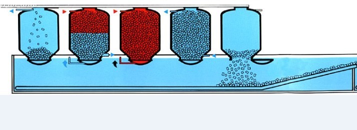 (1)裝料:先進(jìn)熱水作為進(jìn)料緩沖水,邊進(jìn)料邊溢流。